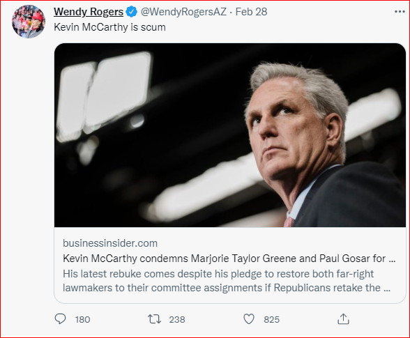The censure, which has no practical effect, was for comments calling for people she perceived as enemies to be hanged from gallows, and for social media postings Rogers made threatening to “personally destroy” fellow Republicans who sought to punish her. The censure resolution was silent on her embrace of white nationalists and a string of antisemitic and racist things she had posted online in recent days.